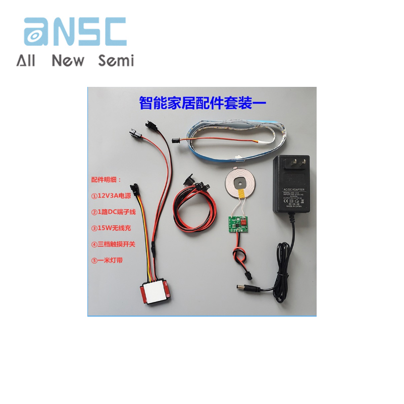 圖片僅供參考Smart bedside table electronic accessories 15W wireless charging suitable for LED lights with touch switch Bluetooth audio module