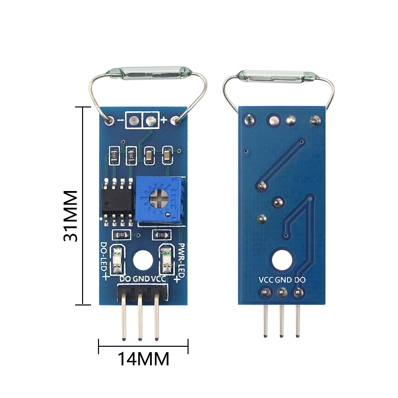 2. The DO output terminal of the module can be directly connected to the I/O port of the microcontroller, and the triggering status of the reed switch can be detected through the microcontroller;