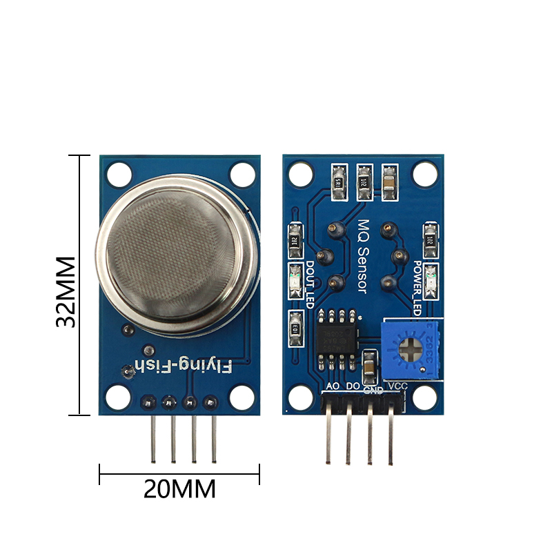 The gas sensing material used in MQ-2 gas sensors is tin dioxide (SnO2) with low conductivity in clean air. When there is combustible gas in the environment where the sensor is located, the conductivity of the sensor increases with the increase of combustible gas concentration in the air. The change in conductivity can be converted into an output signal corresponding to the gas concentration using a simple circuit. The MQ-2 gas sensor has high sensitivity to liquefied gas, propane, and hydrogen, and is also ideal for detecting natural gas and other combustible vapors. This sensor can detect various flammable gases and is a low-cost sensor suitable for multiple applications.