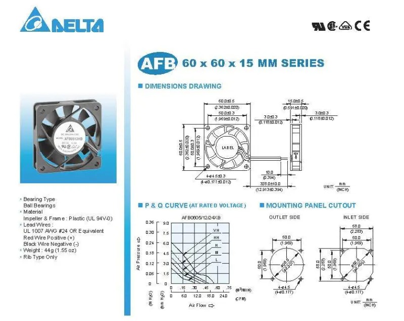 圖片僅供參考Original electric axial flow cooling fan AFB0624HB 24V 0.08A 6015 LB MB HHB VHB