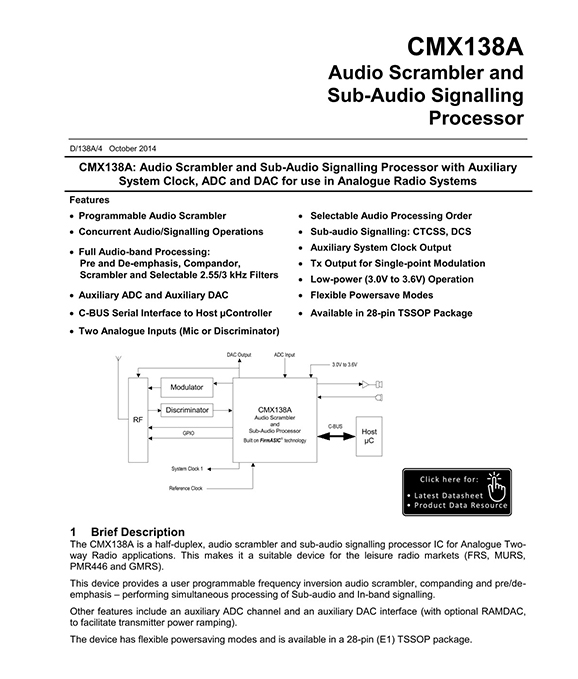 | Base Product Number | CMX138 |