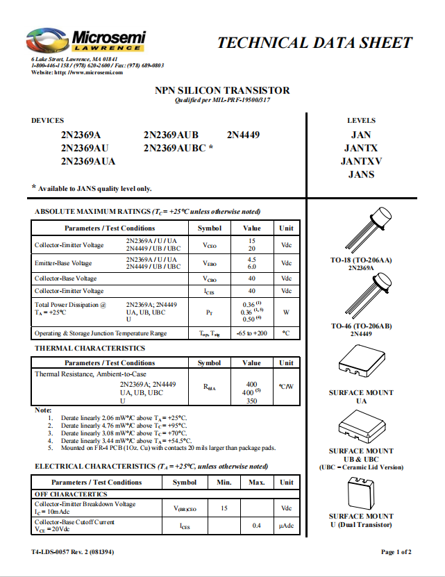 | Qualification | MIL-PRF-19500/317 |