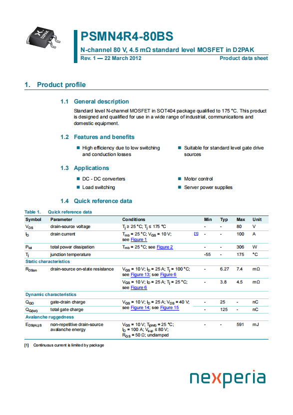 Standard level N-channel MOSFET in SOT404 package qualified to 175 °C. This product is designed and qualified for use in a wide range of industrial, communications and domestic equipment.