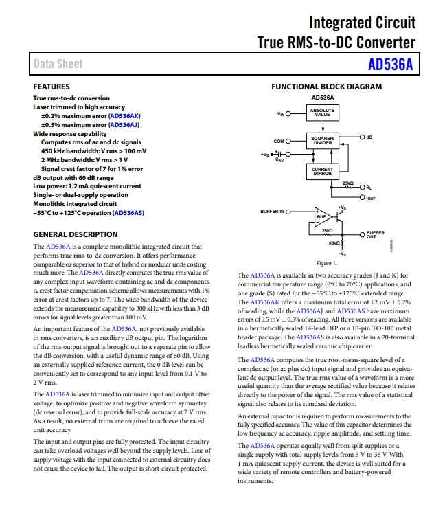 AD536AJHZ applications of RMS to DC converters.