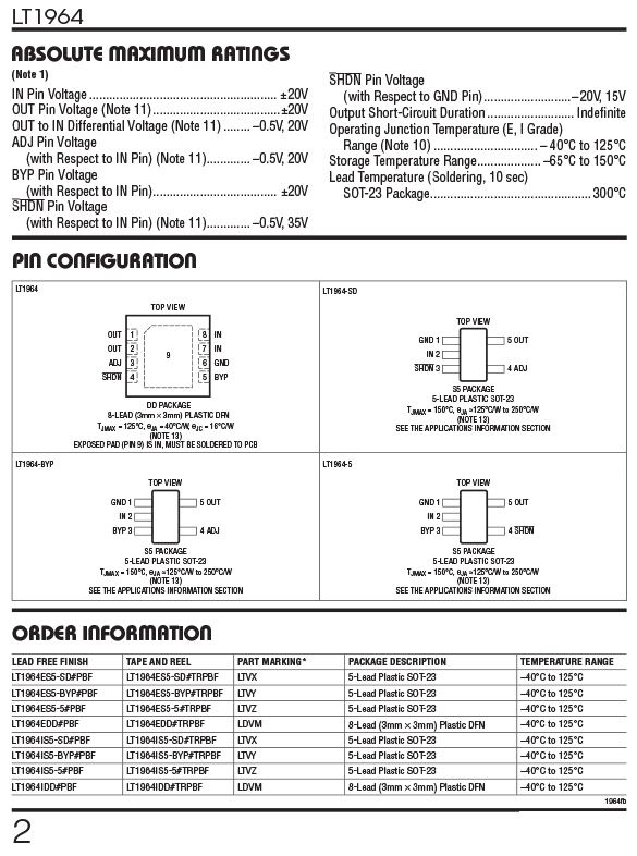 | Part# | LT1964ES5-BYP |